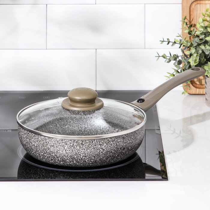 Сковорода Onyx, d=22 см, съёмная ручка, стеклянная крышка, антипригарное покрытие, цвет серый