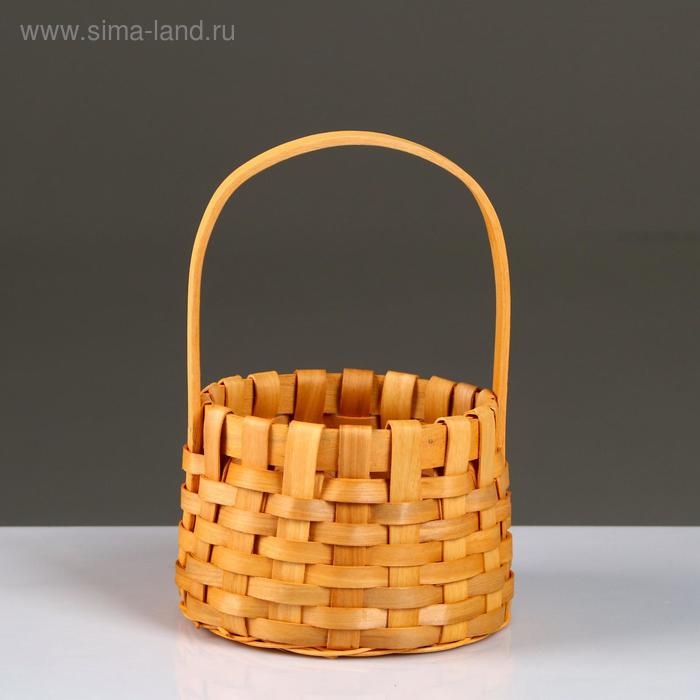 Корзина плетеная бамбук, D13xH9,5/28см, светло-розовая