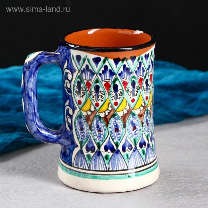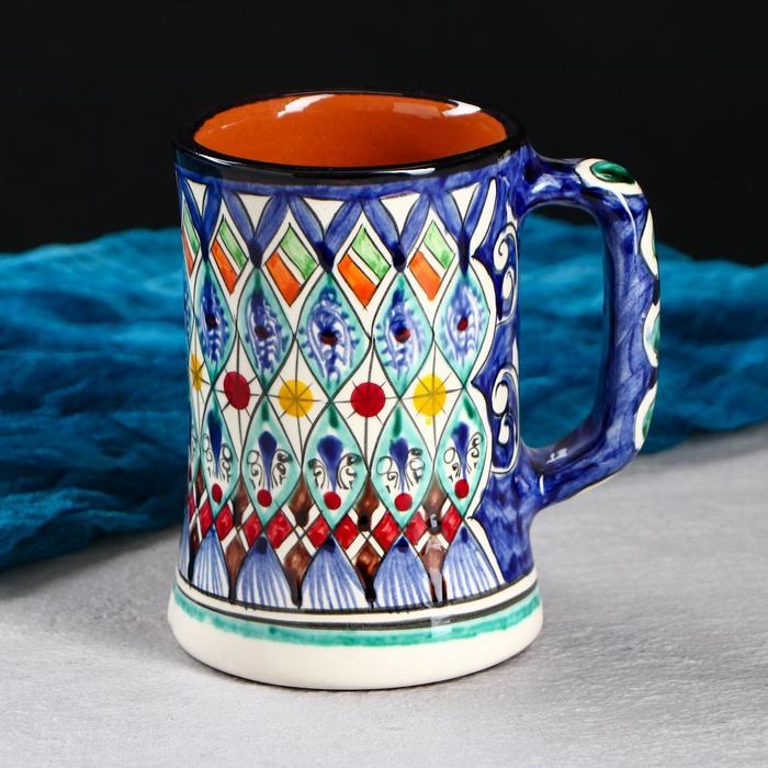 Кружка Риштанская Керамика "Цветы", 500 мл, синий микс