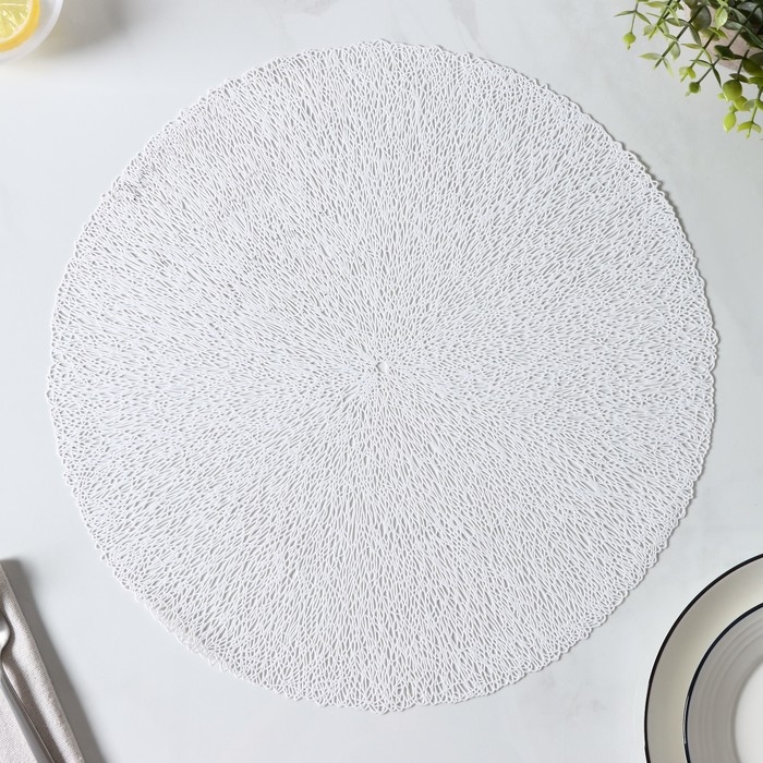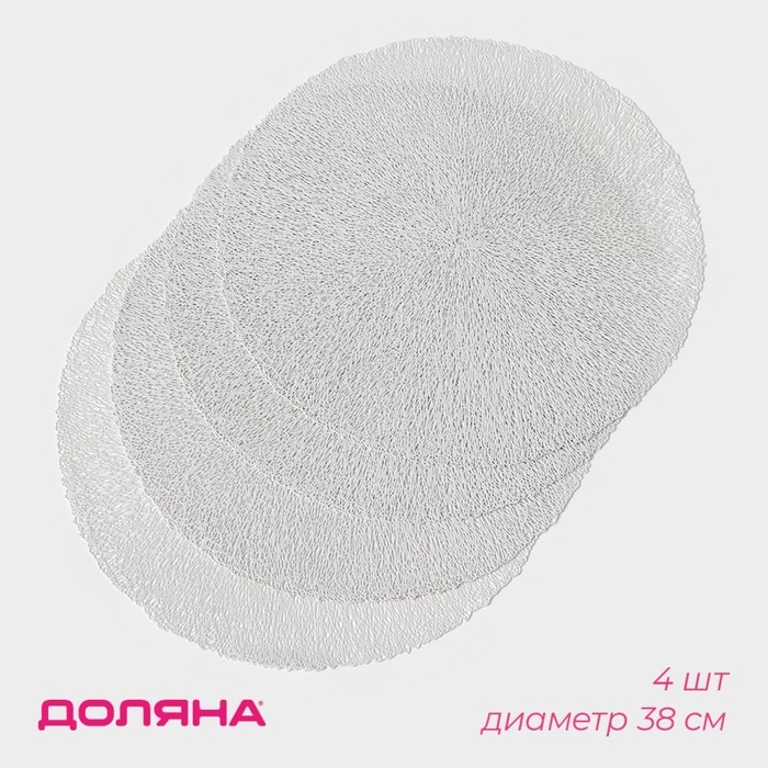 Набор салфеток сервировочных на стол Доляна «Соломка», d=38 см, 4 шт, цвет светло-серый