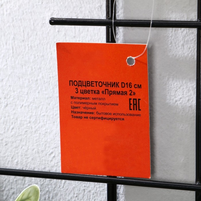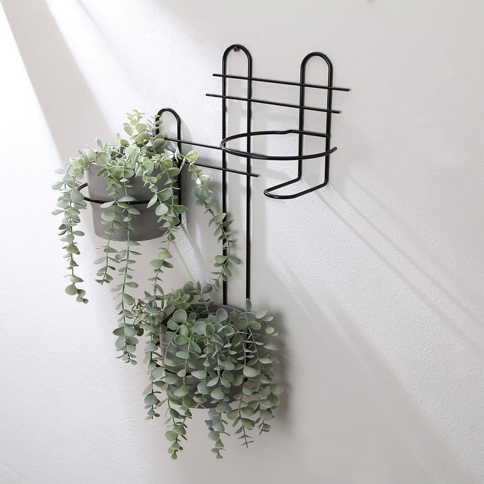 Подвес для кашпо настенный «Прямая-3», d = 16 см, чёрный