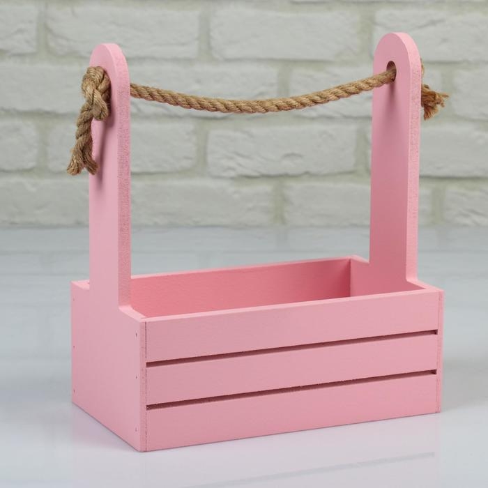 Набор кашпо деревянных 2 в 1 (25×15×30; 21×12×23 см) "Dear", ручка канат, розовый