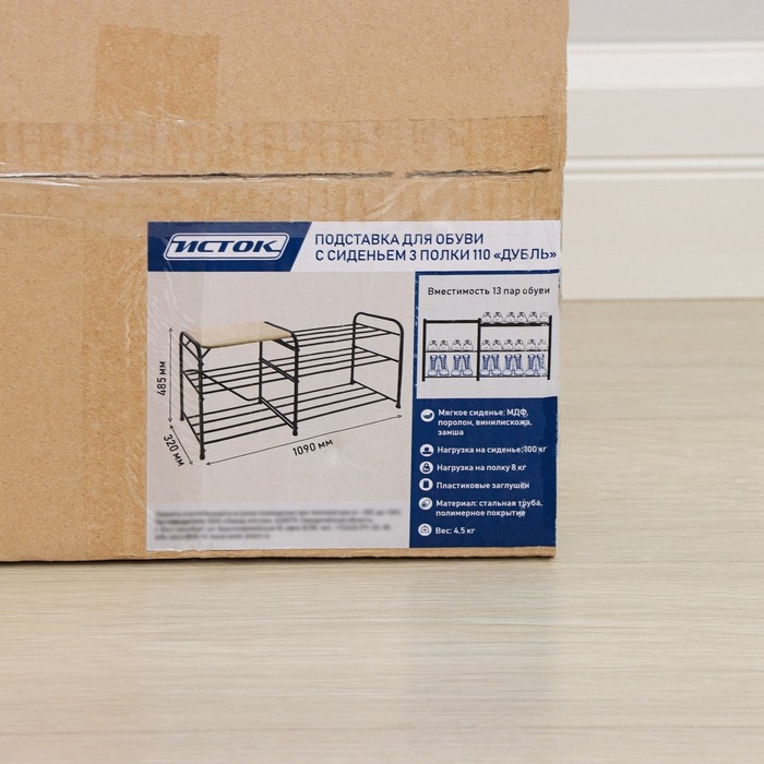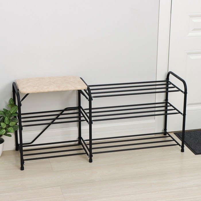 Подставка для обуви с сиденьем «Дубль», 3 полки, замша, цвет чёрный