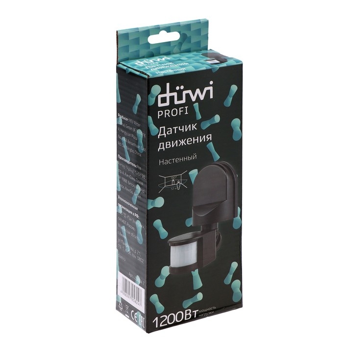 Датчик движения Düwi DD-01, 180°, 1200Вт, 10-420 с, 5-12 м, 2500Лк, IP44 , настенный, черный