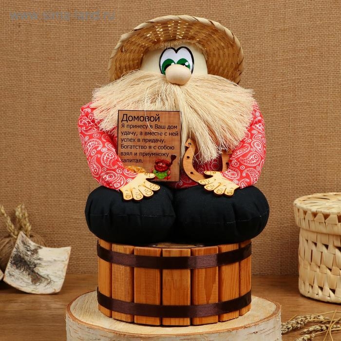 Оберег-домовой "Кузя в кепке, с метлой и подковой", 23х25х13 см МИКС