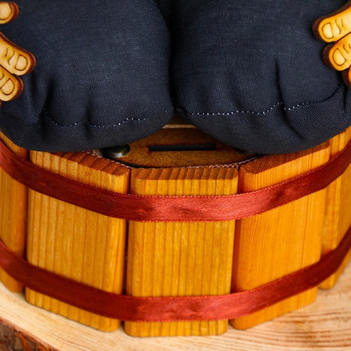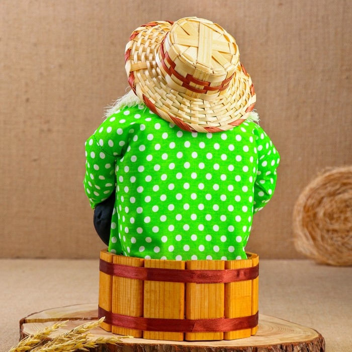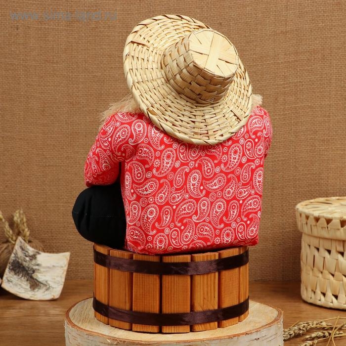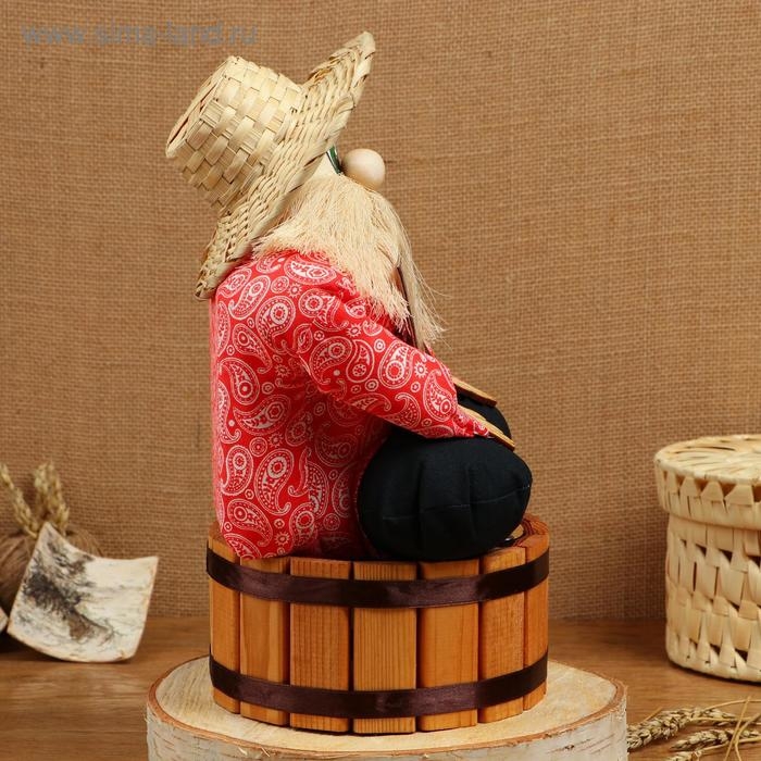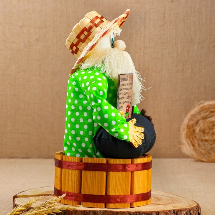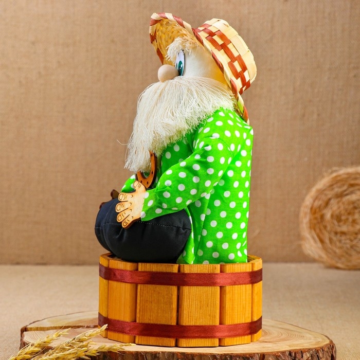 Оберег - домовой "Берендей в шляпе, сидит на бочке", h = 30 см, d = 19, микс