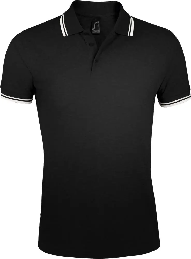 Рубашка поло мужская Pasadena Men 200 с контрастной отделкой черная с белым, размер S