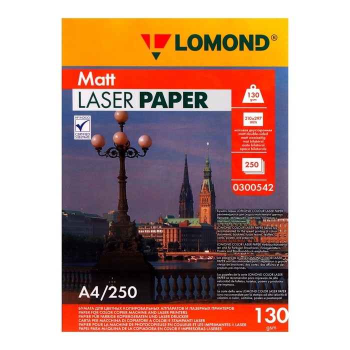 Суперкаландрированная двусторонняя бумага для печати изображений высокого качества с разрешением до 600 dpi.Бумаги серии Lomond Color Laser Paper предназначены для высококачественной полноцветной печати на лазерных принтерах и копировальных аппаратах. Серия включает матовые и глянцевые бумаги с двусторонним покрытием для фотореалистичной лазерной печати. Суперкаландрированная бумага со специальным многослойным покрытием, имеющая многофункциональное назначение обеспечивает превосходную адгезию тонера. Полученные отпечатки обладают высокой четкостью, контрастностью, долговечностью. Бумага Lomond Color Laser Paper рекомендуется для скоростной печати цветных брошюр, вкладышей, карточек, постеров; может с успехом использоваться для производства препринт-продукции. Все бумаги Lomond серии Color Laser сертифицированы для использования на цифровых офсетных машинах HP Indigo (R).