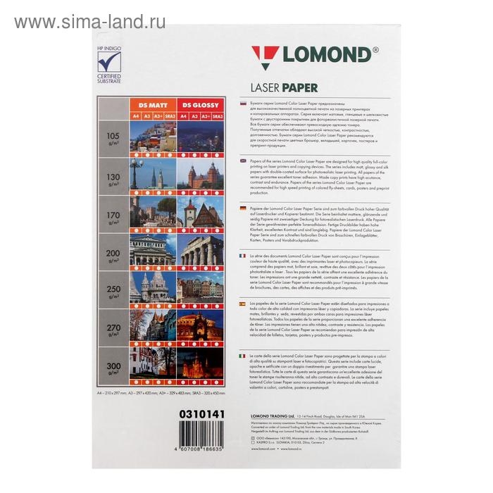 Фотобумага для лазерной печати А4, 250 листов LOMOND, 130 г/м2, двусторонняя, глянцевая