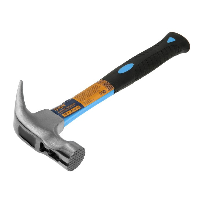 Молоток-гвоздодер ТУНДРА, боек с магнитом, фиберглассовая 2К рукоятка, 500 г