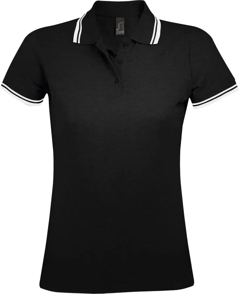 Рубашка поло женская Pasadena Women 200 с контрастной отделкой черная с белым, размер M