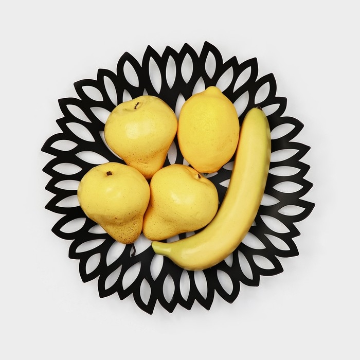 Фруктовница Доляна «Пион», 28,5×28,5×4,5 см, цвет чёрный