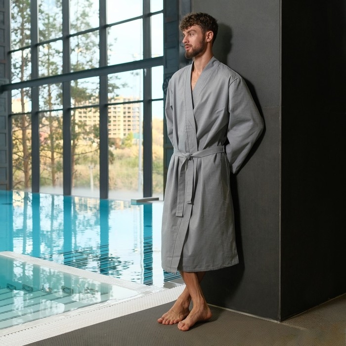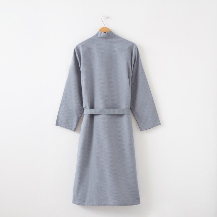 Халат вафельный мужской удлинённый Экономь и Я размер 46-48, цвет серый, 100% хлопок, 200г/м2