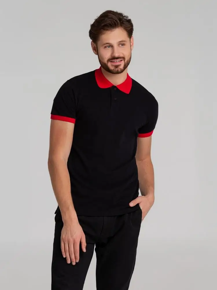Рубашка поло Prince 190 черная с красным, размер XS