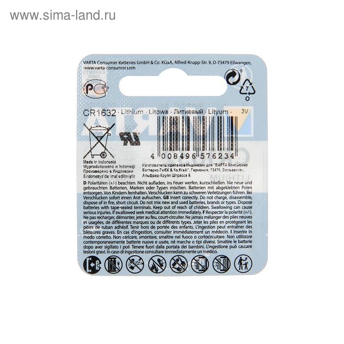 Батарейка литиевая Varta, CR1632-1BL, 3В, блистер, 1 шт.