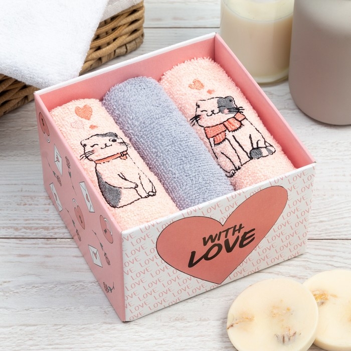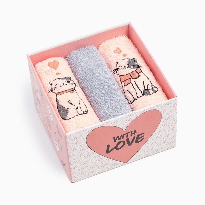 Набор полотенец "Котики" 30х30 см-3шт, 100% хлопок 340 г/м2