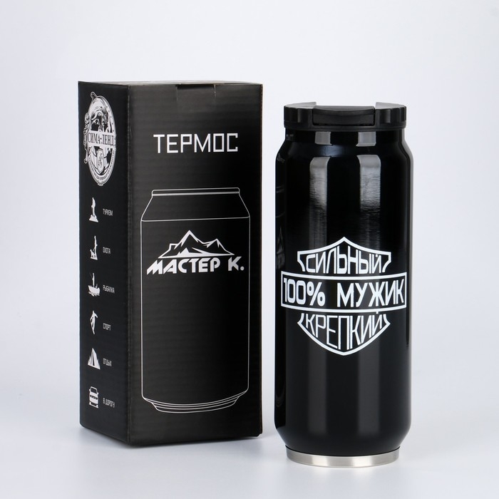 Термокружка, 400 мл, Банка "Мастер К. Мужик", сохраняет тепло 8 ч, 7.6 х 19.3 см