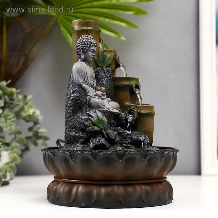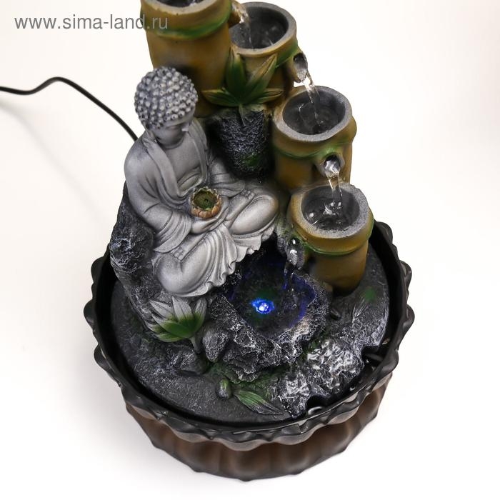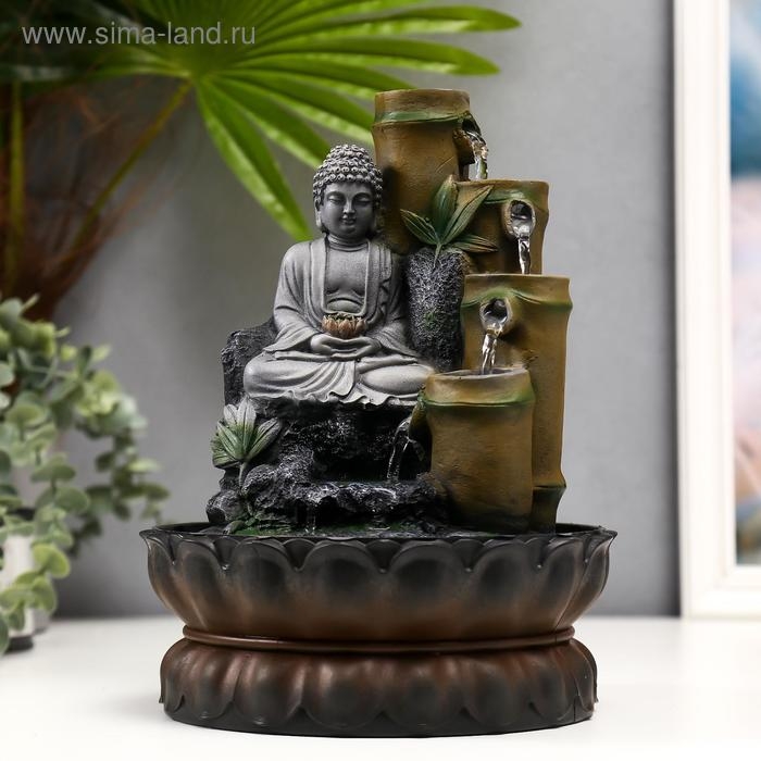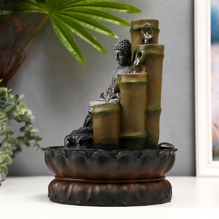 Фонтан настольный от сети "Серый будда и фонтан из бамбука" 28х20,5х20,5 см