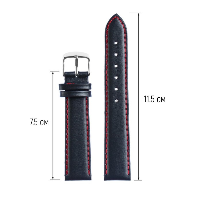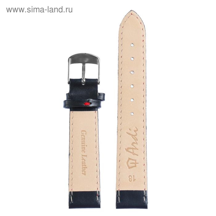 Ремешок для часов, мужской, 18 мм, запряжник 75 мм, горт 115 мм, натуральная кожа, чёрный