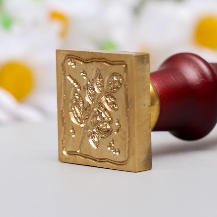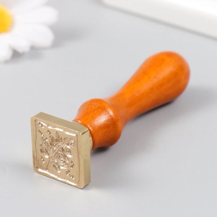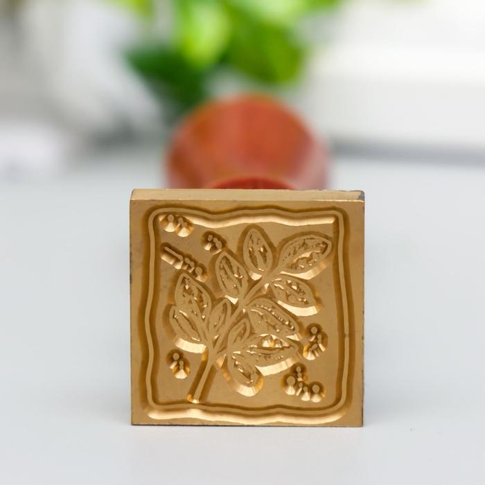 Печать для сургуча с деревянной ручкой "Веточка с листьями" 9х2,5х2,5 см