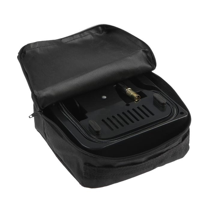 Компрессор автомобильный двухпоршневой, 12В, фонарь, 25 л/мин, сумка, черный