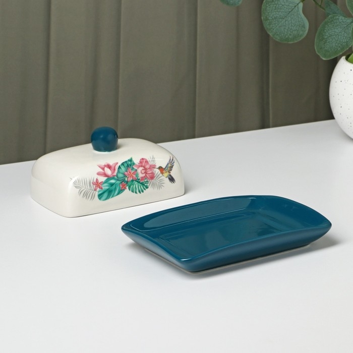 Маслёнка Доляна «Тропики», 17×12,5×8 см, цвет белый