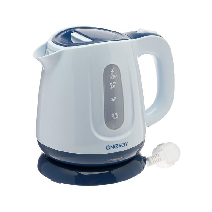 Чайник электрический ENERGY E-234, пластик, 1 л, 1100 Вт, бело-синий