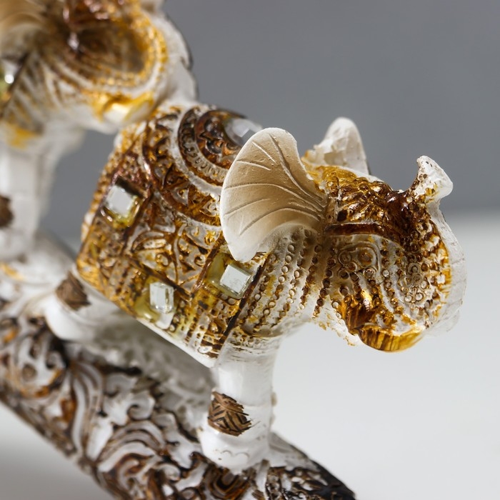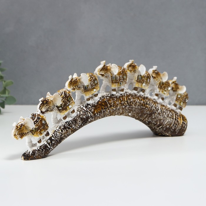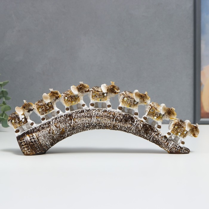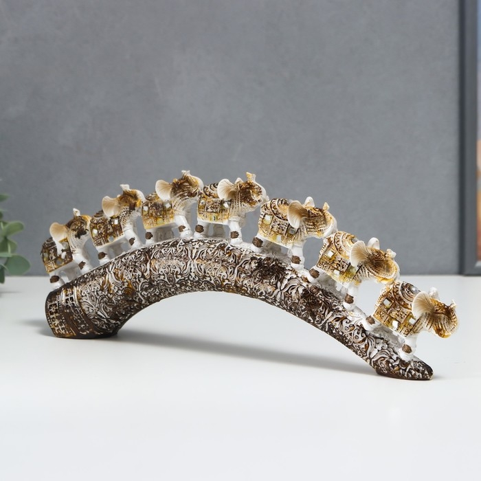 Сувенир полистоун "Семь белых слонов с попоной из арабского ковра на роге" 11,5х31х5 см