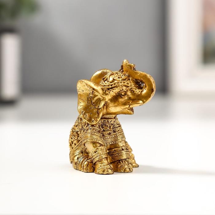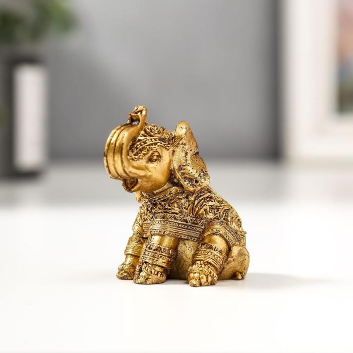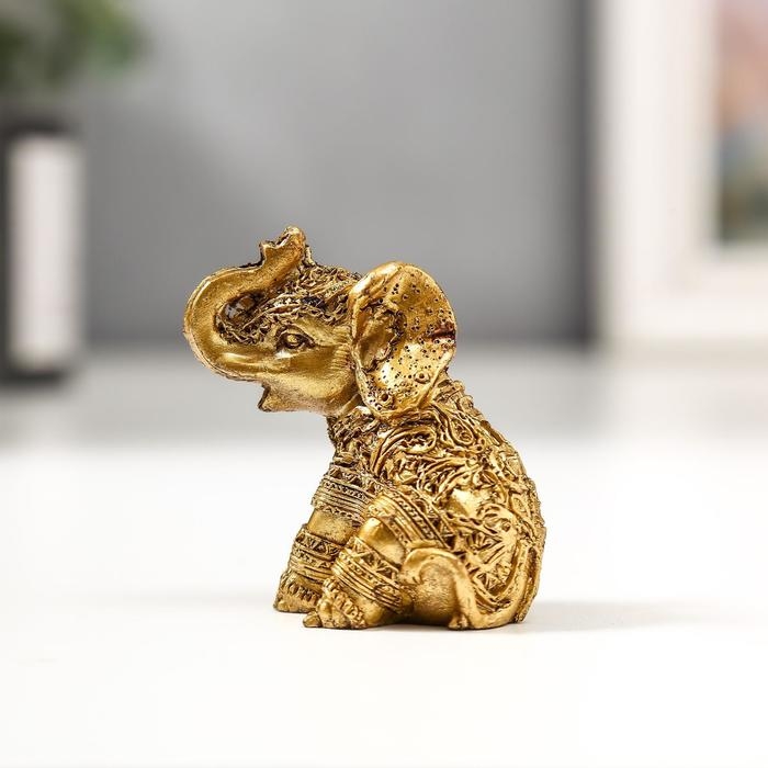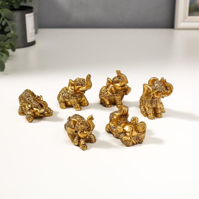 Сувенир полистоун "Золотые слоники, рисунки на попоне" набор 6 шт 4,7х5,5х3 см