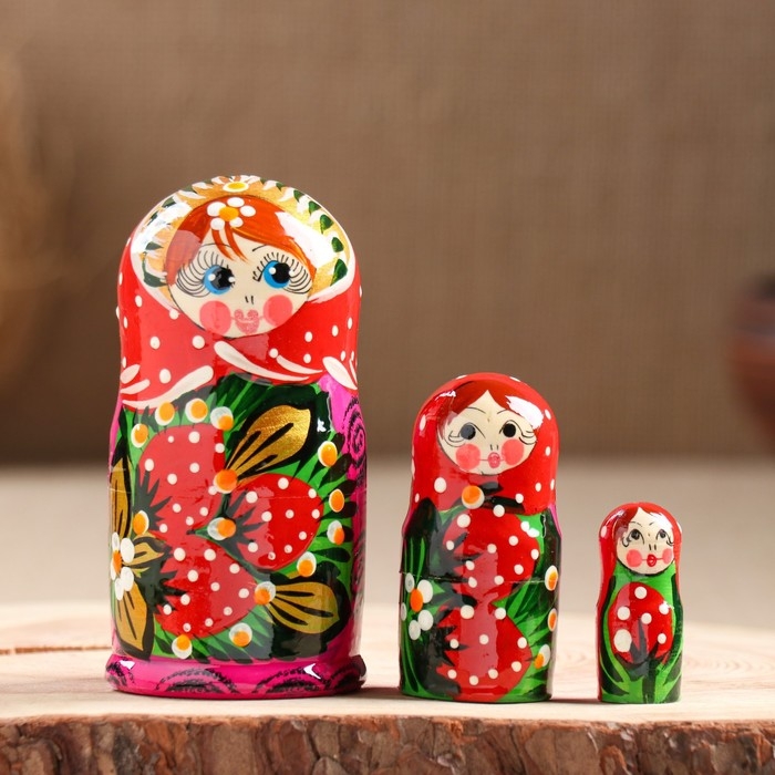 Матрёшка 3-х кукольная "Катя" ягоды, 11см, ручная роспись.