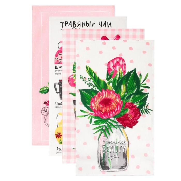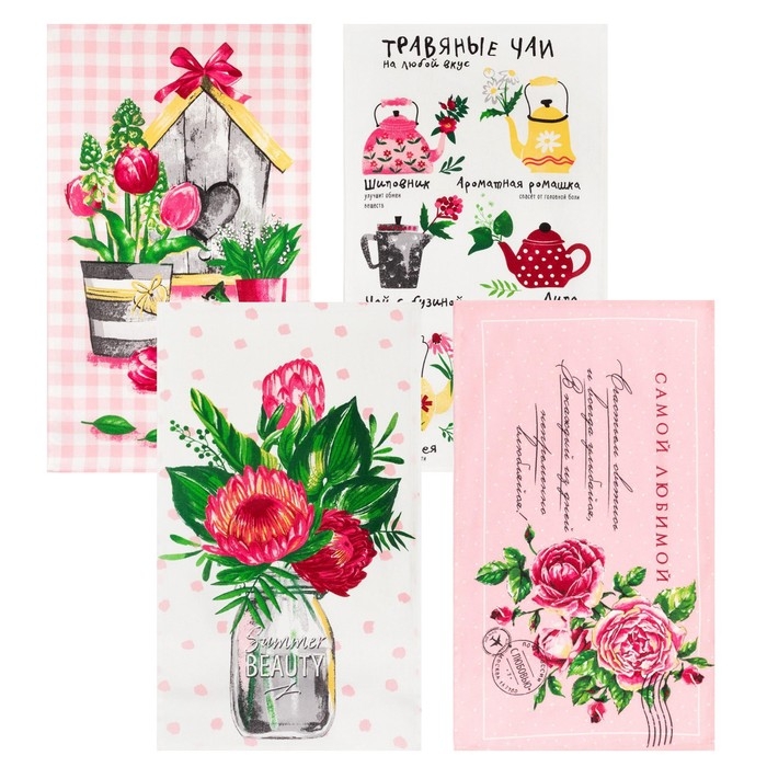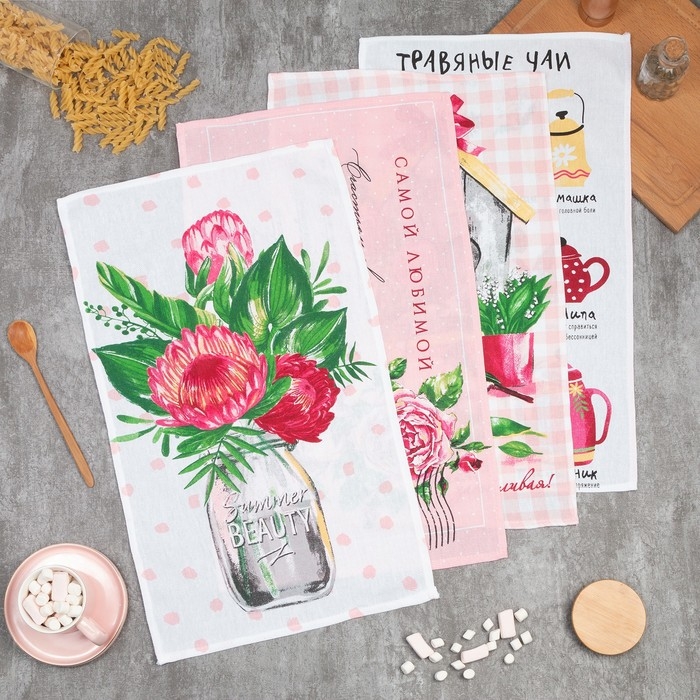 Набор кухонных полотенец Доляна «Самой любимой», 35х60см-4шт, 100% хлопок