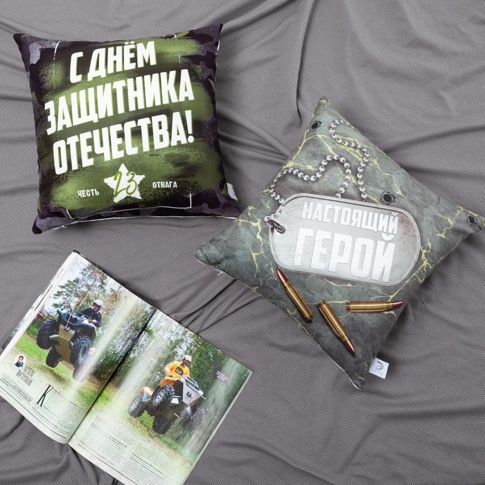 Подушка декоративная Этель "День Защитника Отечества" 40х40 см, велюр, 100% п/э