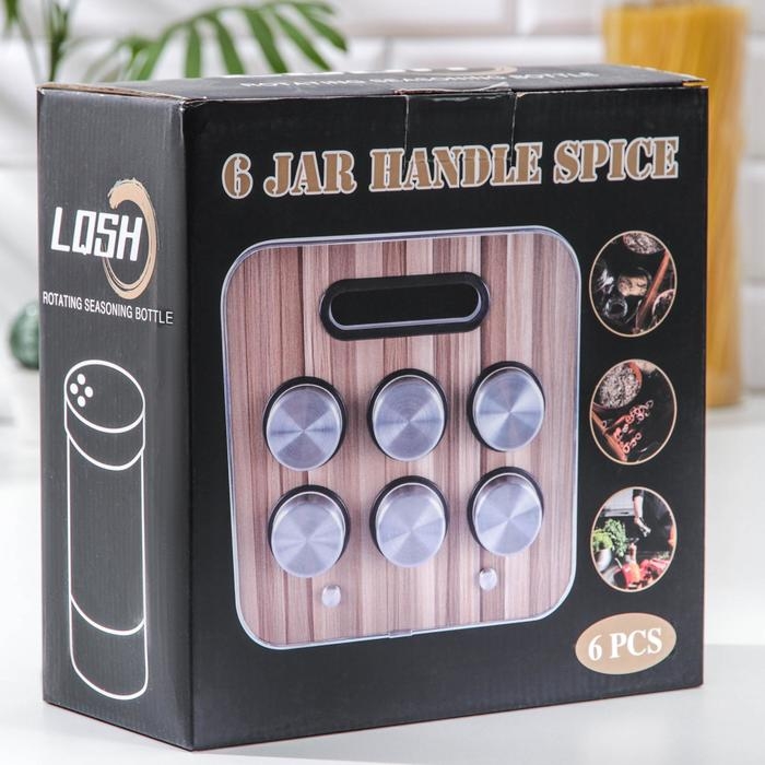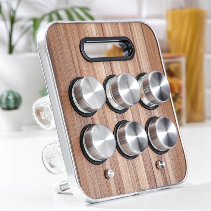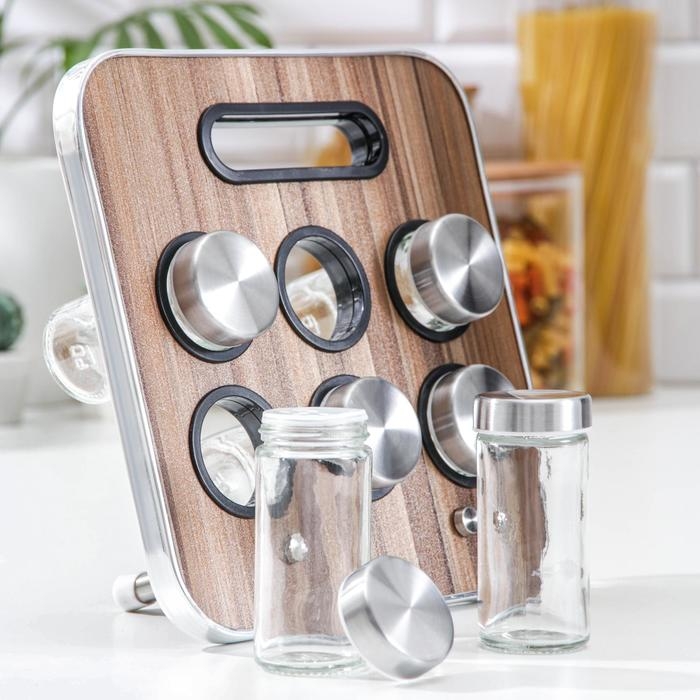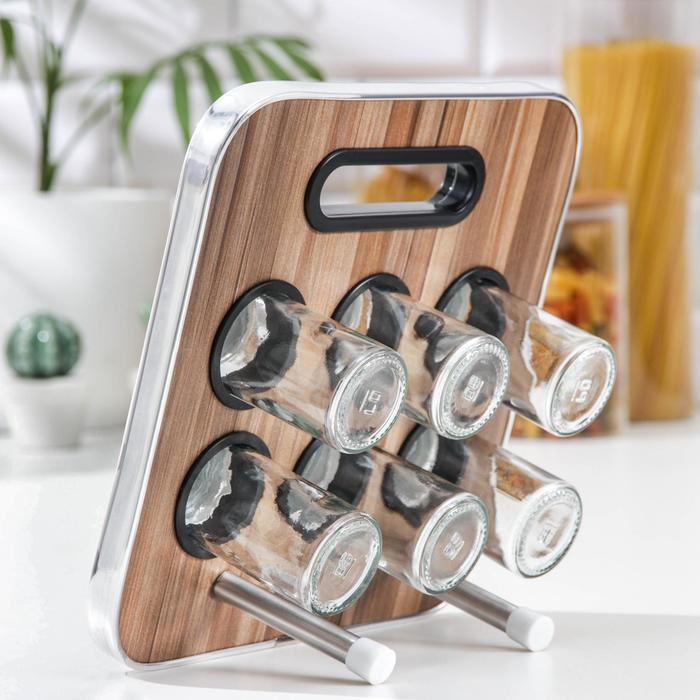 Набор для специй на подставке «Модерн», 28,5×12×18,5 см, 90 мл, 4×9,5 см, 6 шт