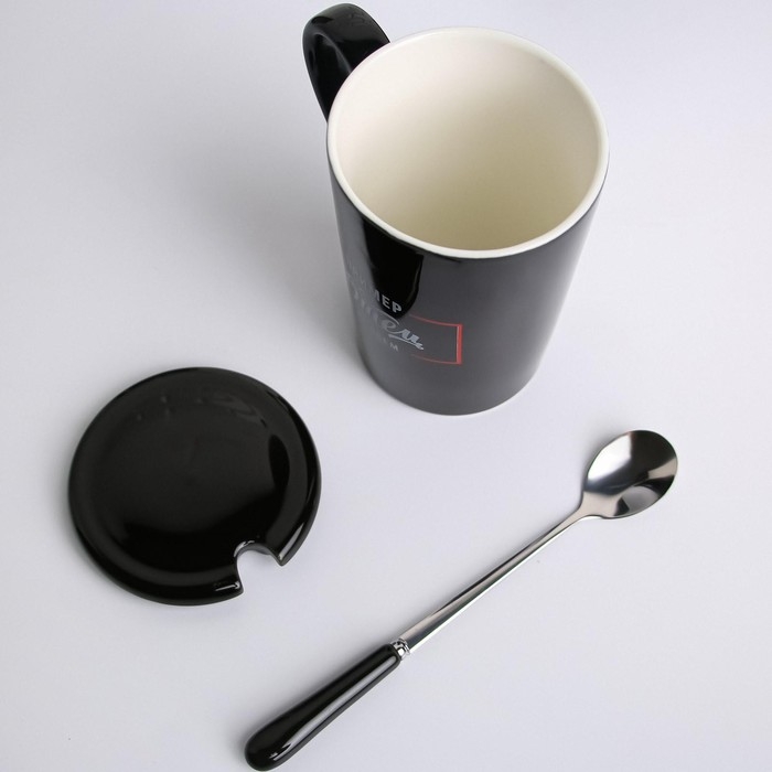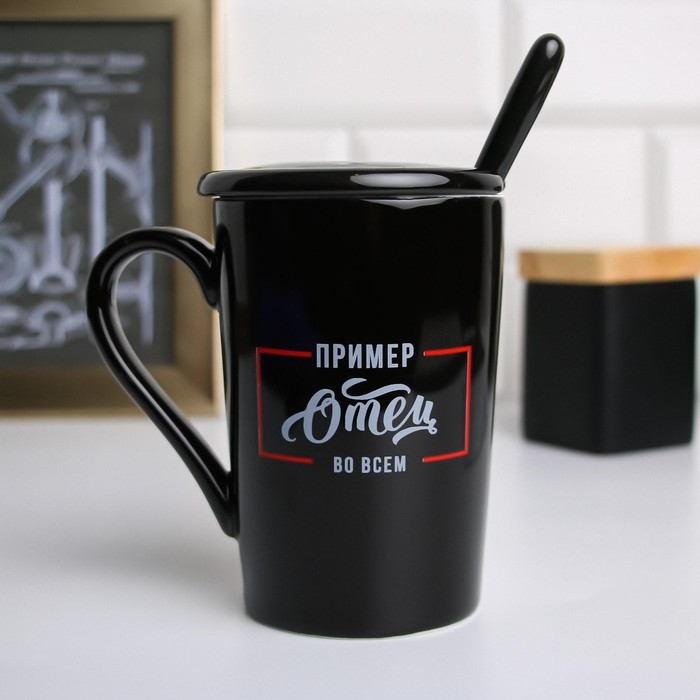 Кружка керамическая «Отец пример во всем», 400 мл, с ложкой и крышкой, цвет белый