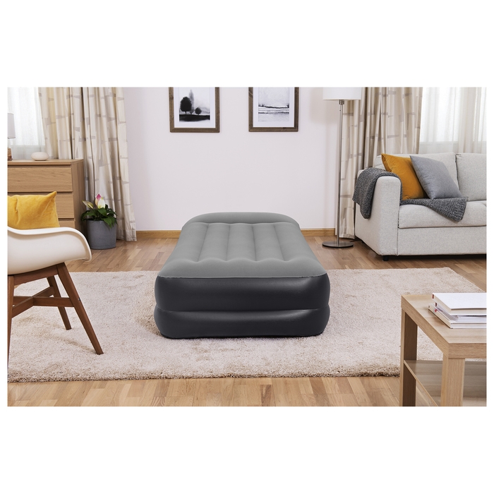 Односпальная надувная кровать отлично подходит для размещения гостей в доме и отдыха на природе. Модель имеет внутренние перегородки, благодаря чему сохраняется первоначальная форма изделия и обеспечивается его долгий срок службы. В сложенном виде кровать не занимает много места и комфортно транспортируется.