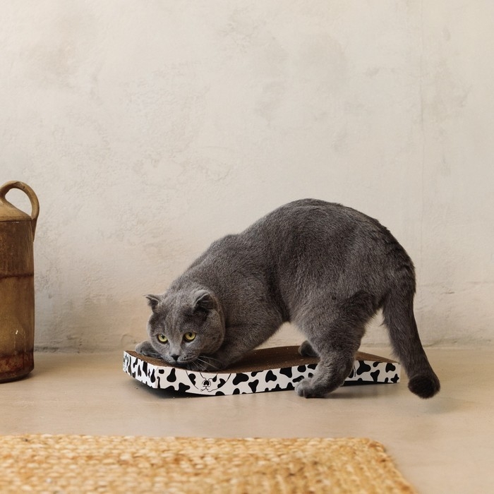 Структура когтеточки напоминает домашним питомцам кору дерева, что всегда привлекает их внимание. Изделие является антистрессом для кошки.