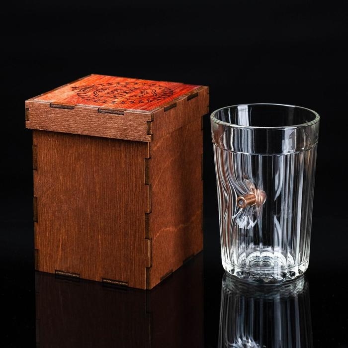 Стакан "Непробиваемый. 23 февраля", для виски, с пулей, 250 мл