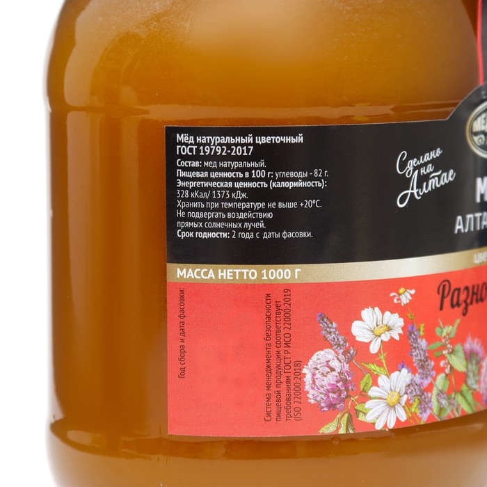 Мёд алтайский «Разнотравье» натуральный цветочный, 1000 г
