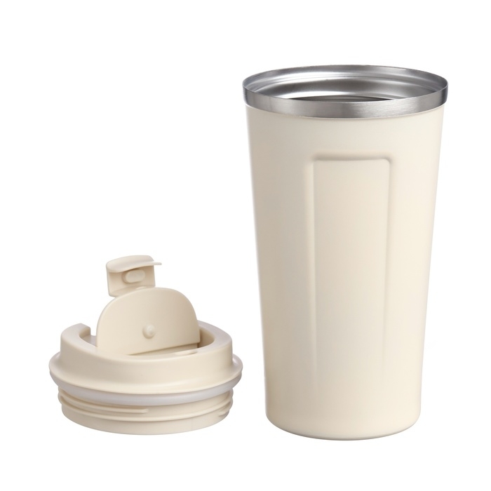 Термокружка выполнена из 304 нержавеющей стали, сконструирована по вакуумной технологии, с двойной стенкой, следовательно, долго держит тепло и не проливается. Снабжена откидывающейся крышкой на 180°, изготовленная из экологичного пищевого пластика, имеется фиксатор, возможность с легкостью использовать термокружку одной рукой. На дне, термокружка имеет специальную прорезиненную основу, предотвращающую царапины на поверхностях.