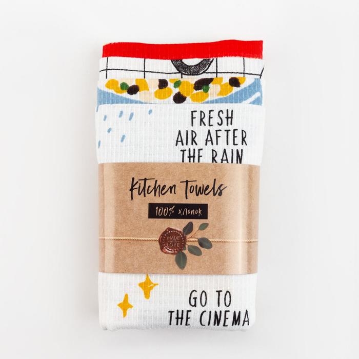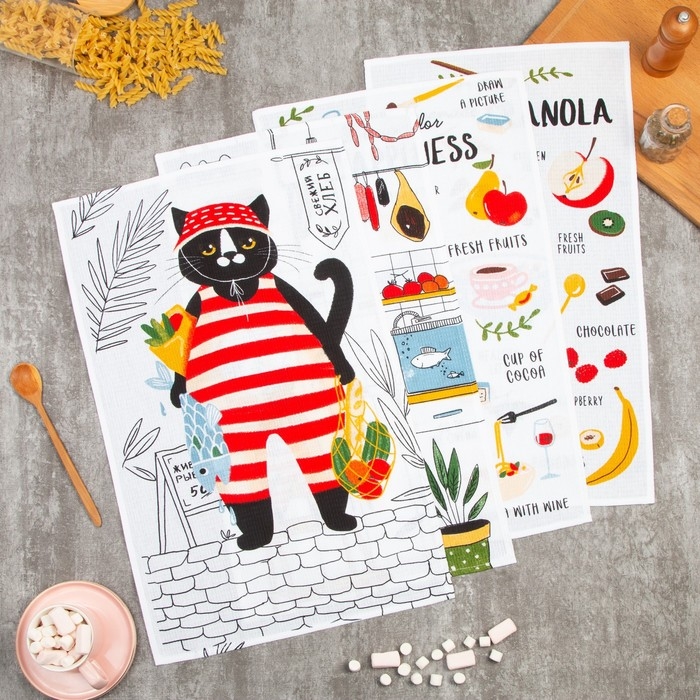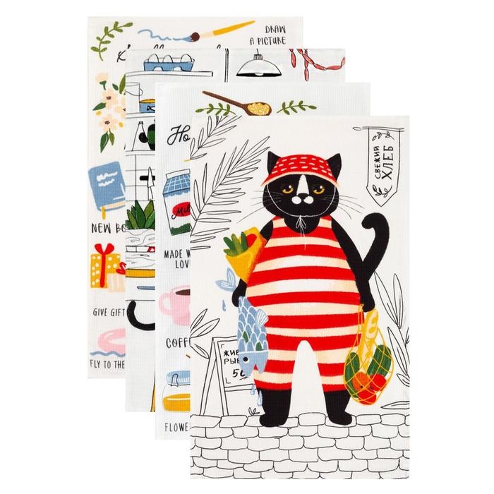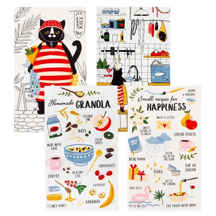 Набор кухонных полотенец Доляна Happiness, 35х60см-4шт, 100% хлопок