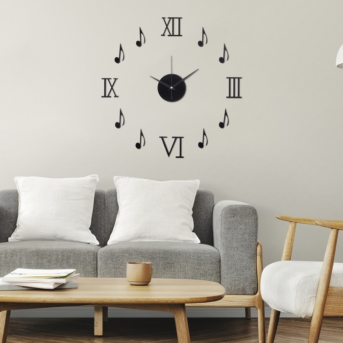 Часы настенные интерьерные, 3d "Ноты", наклейка, большие, d-45 см