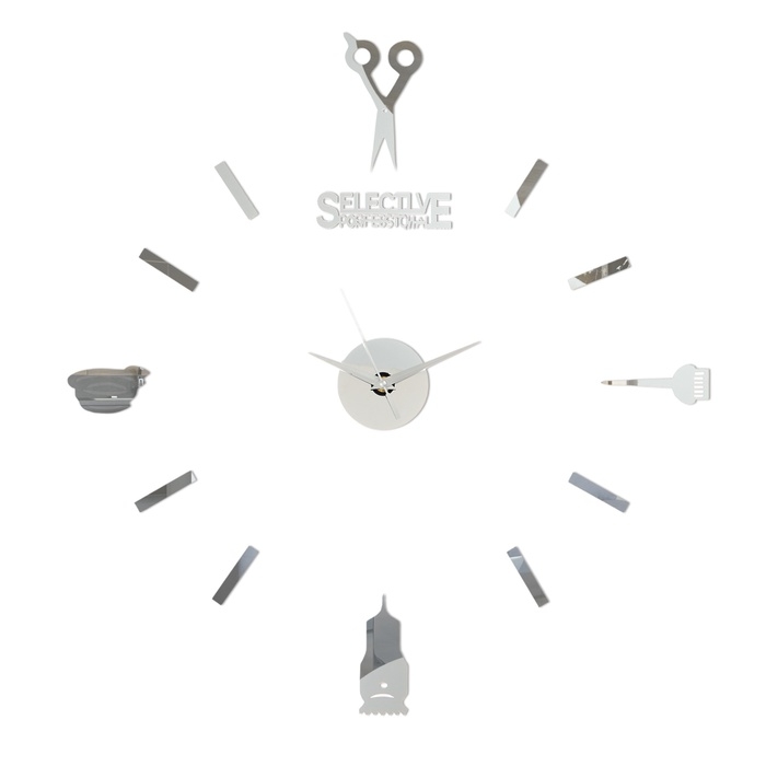 Часы настенные интерьерные большие, 3d "Парикмахер", наклейка, d-45 см