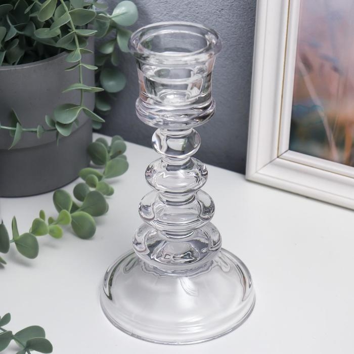 Подсвечник стекло на 1 свечу "Плавные линии" прозрачный 20х11х11 см