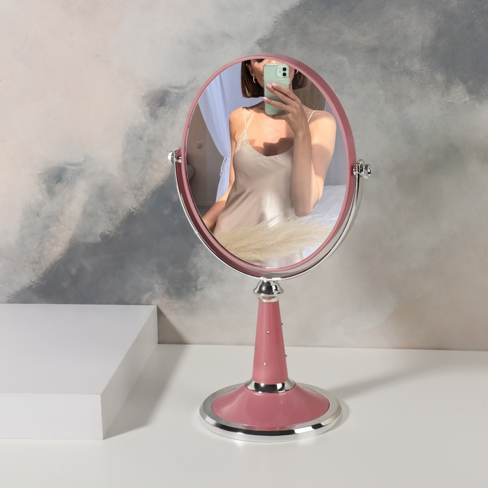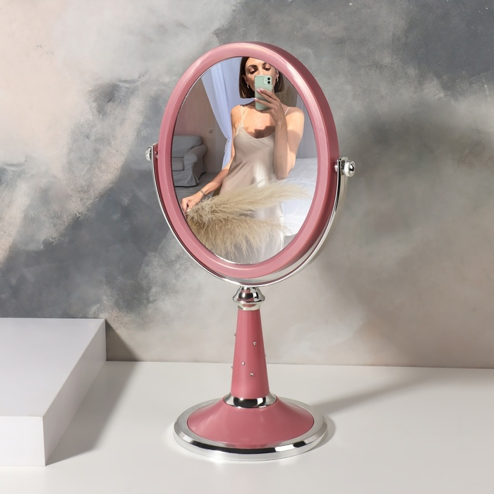 Зеркало на ножке «Овал», двустороннее, зеркальная поверхность 13,5 × 16,5 см, цвет МИКС