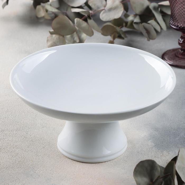 Подставка для десертов керамическая с крышкой-клош на деревянной ножке BellaTenero, d=24 см, цвет белый