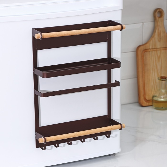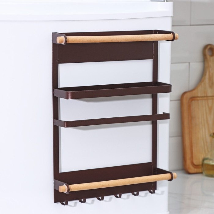 Держатель для кухонных принадлежностей на магните Доляна, 6 крючков, 4 направляющих, 34×24,5×34 см, цвет коричневый