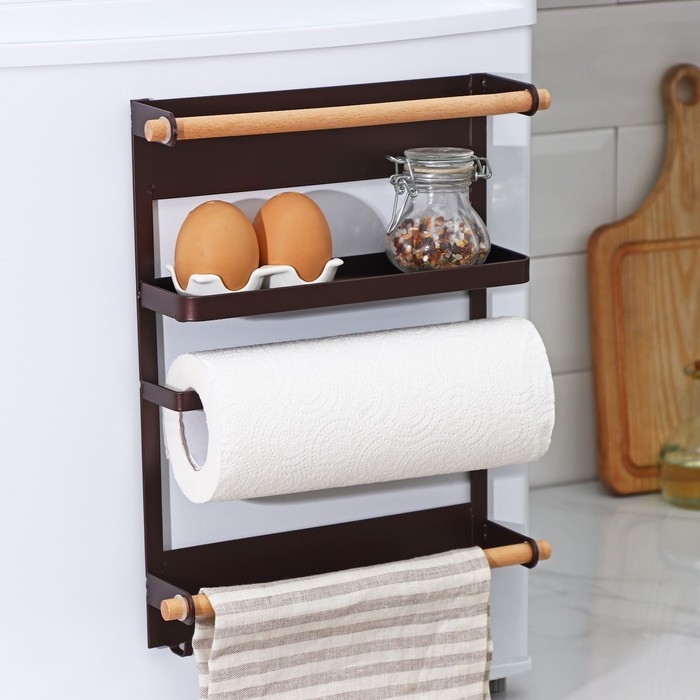 Удобный держатель предназначен для экономии места на кухне, а именно компактного хранения полотенец в одном месте.