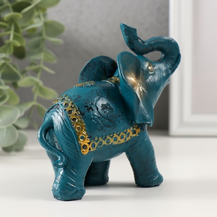 Сувенир полистоун "Синий слон с золотым узором на попоне" МИКС 11х11,5х6 см