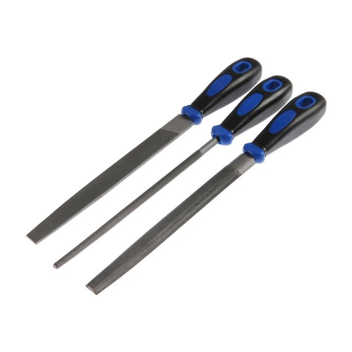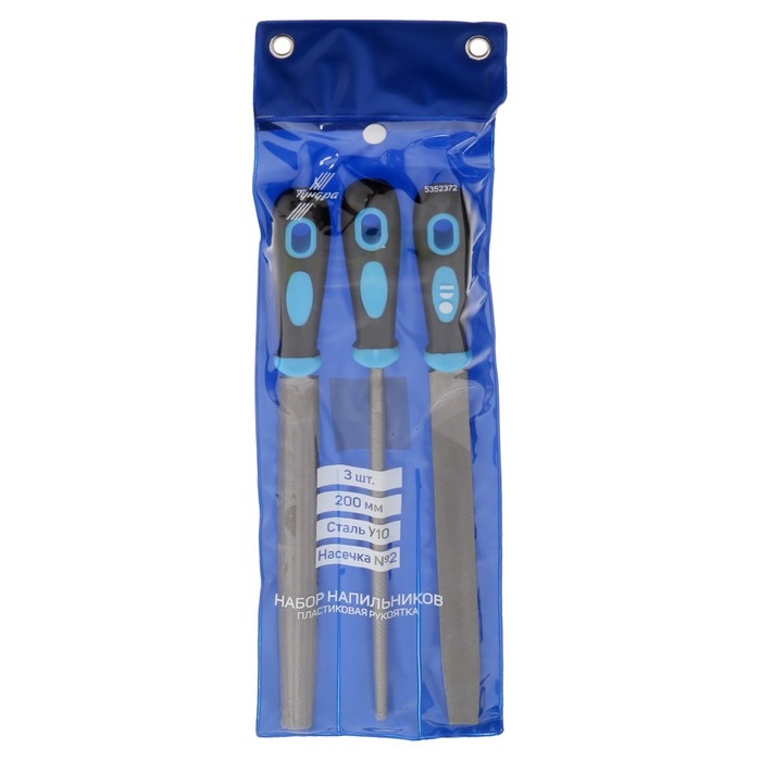 Набор напильников ТУНДРА, сталь У10, насечка №2, пластиковые рукоятки, 200 мм, 3 шт.
