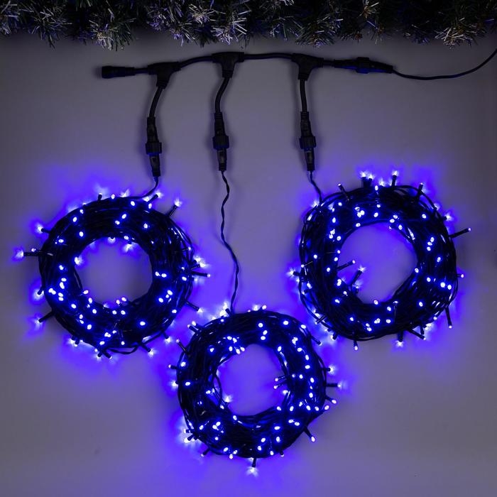 Гирлянда «Клип-лайт» 3 нити по 20 м, IP44, УМС, тёмная нить, 399 LED, свечение синее, 8 режимов, 24 В